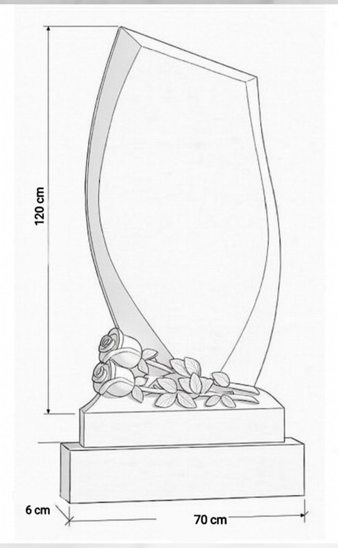 Моделът позволява гравиране на имена, дати, епитаф и символи, както и добавяне на керамична снимка по желание. В долната част е включен декоративен елемент с рози, който символизира вечната памет, любов и почит.