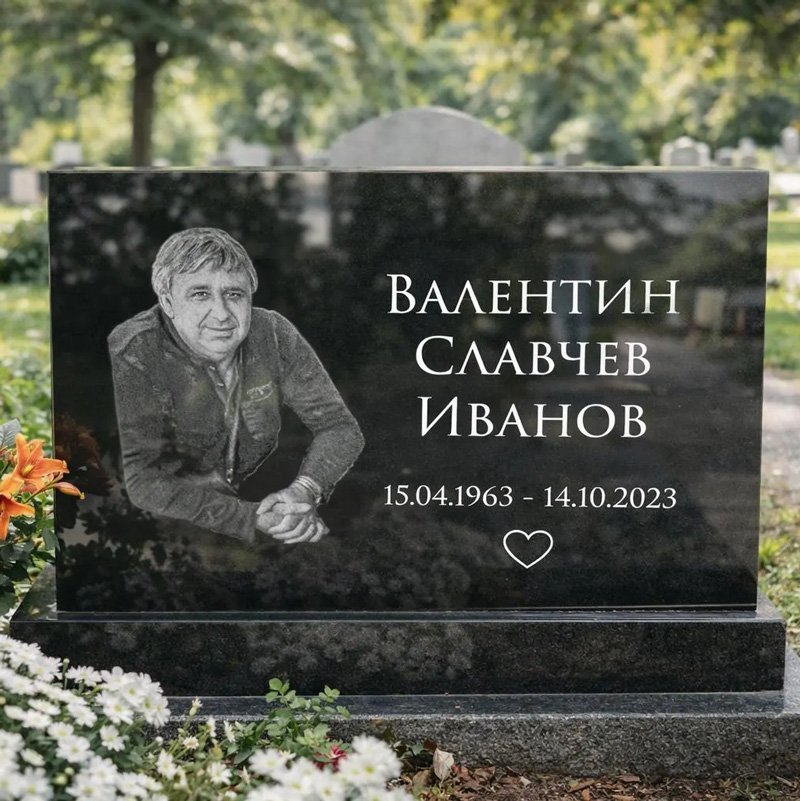 Елегантен и издръжлив надгробен паметник от висококачествен полиран черен гранит, създаден да съхрани спомена за близкия човек с уважение, достойнство и вечна красота. Паметникът включва реалистично гравиран портрет, фино изписани имена, дати на раждане и смърт, както и възможност за персонално послание или символ.