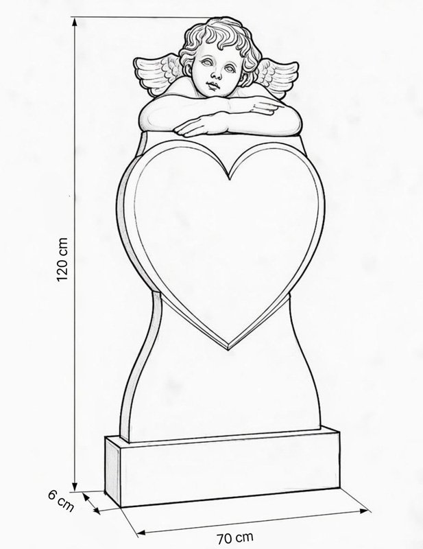 Надгробен паметник от сив мрамор с ангел и сърце – символ на любов и закрила. Подходящ за персонализирано гравиране. Издръжлив и елегантен дизайн.