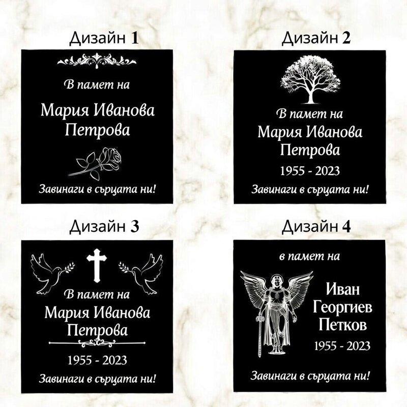 Всяка плоча се изработва по индивидуална поръчка, с внимание към детайла и съобразяване с изискванията на конкретното гробищно място.