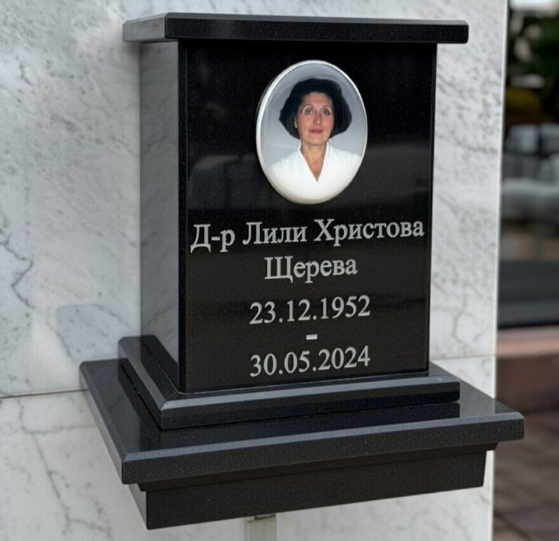 Предната част позволява гравиране на имена, дати и епитаф, както и поставяне на керамична снимка в овална форма, устойчива на атмосферни влияния. Изчистеният дизайн и светлият мрамор придават спокойна и достойна визия, подходяща за урнови гробове, колумбарни ниши и мемориални паркове.